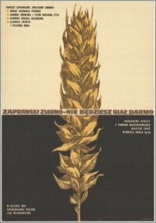 Title: Zaprawiaj ziarno nie będziesz siał darmo ; Poprzez zaprawianie zwalczamy choroby; śniedź cuchnącą szenicy, głownię źbłową i pleśń śniegową żyta, głownię zwrtą jęczmienia, głownię zwartą i pyłkową owsa ; przeciętne straty z powodu niezaprawiania nasion zbóż wynoszą około 2q/ha ; w każdej wsi zaprawiarka ręczna lub mechaniczna