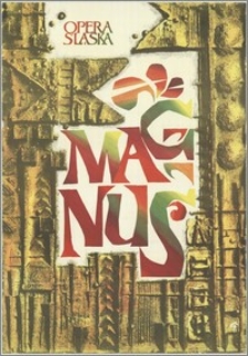 Na plakacie inicjał autora: "G" u dołu rysunku po prawej stronie ; Na tle imitującym płaskorzeźbę kolorowy napis "MAGNUS" ; 83 x 58 cm. ; druk kolorowy ; 1 plakat