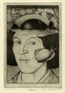 akwaforta z akwatintą; 9,8x6,7 cm. ; Metaforyczny wizerunek - głowa 3/4 w lewo, ze ślimakiem. U góry: NICOLAI COPERNICI. MUSAEUM FROMBORCENSE.