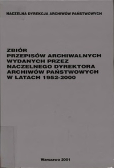 Title: Zbiór przepisów archiwalnych wydanych przez Naczelnego Dyrektora Archiwów Państwowych w latach 1952-2000