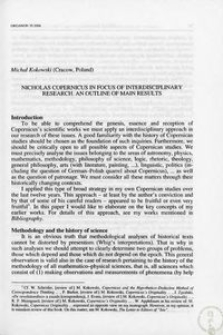 Title: Nicholas Copernicus in focus of interdisciplinary research : an outline main results