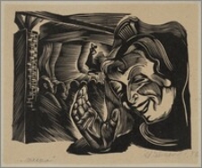 grafika ; drzeworyt ; 11x14 cm ; sygnowany i datowany ołówkiem pod ryciną u dołu z lewej: "Maska", u dołu z prawej: "St. Żukowski 43" ; Jedna z rycin powstałych w obozie dla jeńców wojennych-Woldenberg II C 1942.