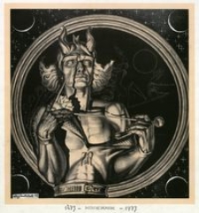 litografia; 44,5x41,7 cm. ; Portret symboliczny Mikołaja Kopernika z astronomicznymi atrybutami; kompozycja w kole. U dołu napis: "1473- KOPERNIK -1973".